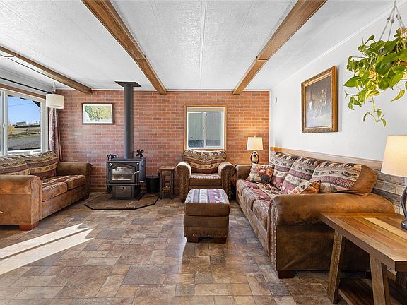 Step into the warmth and welcome of 106 Badger Street in White Sulphur Springs! This delightful 3 bedroom, 2 bathroom home offers 1,213+- sq ft of living space. Thoughtfully designed with an open ranch-style living, generous storage & a peaceful master suite. The abundance of natural light pours in through the large windows, while the wood stove adds a cozy touch of Montana's rustic charm. The kitchen is great, featuring ample storage, a pantry & expansive countertops that flow effortlessly into the adjacent dining area.