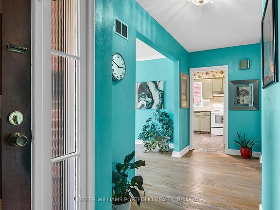 This cherished mid-century bungalow stands ready for a creative new owner to refresh its spacious interiors. Perfect for living now, with potential for future enhancements or a custom rebuild on its large 50x160 ft west facing lot. The home is bathed in natural light thanks to large windows & solar tubes in the kitchen & bath. It features a separate basement entrance, offering flexibility, and an attached garage. Open concept living and dining areas with original hardwood floors, crown moulding, and an eat-in kitchen with built-in pantry, offer everyday function & ease. Three bedrooms, including a primary with backyard views, maintain original hardwood & ample light. The expansive basement includes a rec room with bar area, & additional space for an office or bedroom. Outside, a well-kept yard & flat-roofed patio await. This could be the perfect canvas to build your custom dream home, with building plans already in place by the current owner. Centrally located, steps from parks, top schools, transit, shopping, and the Kipling GO and subway hub, this home offers endless potential.