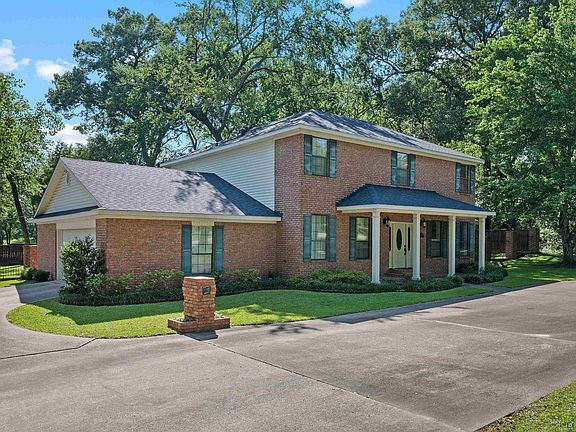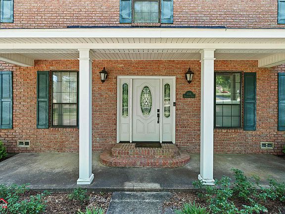 histication blend effortlessly. The dark gray roof beautifully complements the rich brick exterior, while classic green shutters add a welcoming touch of character. A symmetrical façade invites you in, leading to an impressive entrance with a white door adorned with glass panels, framed by elegant columns supporting a quaint porch roof—your gateway to warmth and comfort. The meticulously landscaped front yard sets the tone for the refined beauty found inside. Lush green grass and neatly trimmed shrubs create an inviting atmosphere, while a graceful curved driveway adds a touch of grandeur. Towering trees surround the property, offering a serene retreat and a sense of privacy. A fenced area on the right enhances the exclusivity, making this home feel like your own private sanctuary. Inside, over 3,500 sq. ft. of luxurious living space awaits. This thoughtfully designed home boasts four expansive bedrooms and three and a half bathrooms, ensuring ample room for family and guests alike. The grand staircase is a striking focal point, leading to the upper level with a sense of prestige and grandeur. The formal dining room is perfect for hosting unforgettable gatherings, creating memories over meals in a space designed for elegance. One of the most breathtaking features is the back wall of windows in the living room, flooding the space with natural light and offering unobstructed views of the impeccably manicured lawn. The scenery is not just a view—it’s a lifestyle, bringing the beauty of the outdoors into your everyday living. Beyond the main home, a separate structure offers endless possibilities—whether you envision a workshop, a man cave, or an extra garage, this additional space is tailored for functionality and versatility. This residence is more than just a house—it’s a masterpiece of design and comfort, a place to truly call home. Don’t miss the opportunity to make it yours!