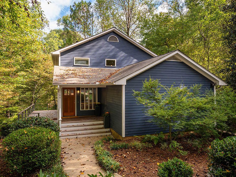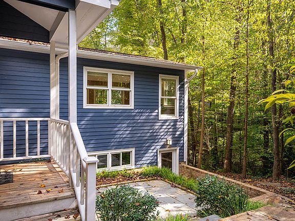 Listen up! Yes, that is the sound of Morgan Creek far below this hilltop home. If you dreamt of life in a treehouse - 5 min from UNC, Carrboro and Chapel Hill - well here it is! First floor primary bedroom is among the FIVE bedrooms! The owners have lovingly renovated just about every inch of this home. Count on gorgeous bathrooms, built-ins, enormous windows, Brazilian Ipe wood decks, screen porch and a fieldstone patio.. Kitchen with slide out storage, JennAir stove, and granite countertops. New paint, new carpet, freshly refinished hardwoods. Right off the kitchen and dining area you will find den with a full renovated new bathroom. But this can also function as a guest suite or fabulous work from home space with built-ins. A pocket door closes off the room from the rest of the floorplan.. Enormous walk in basement to store EVERYTHING. Exterior is updated hardiplank and freshly painted. Access the Morgan Creek trail and the free CH/C bus right nearby.