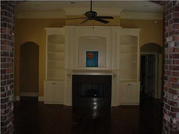 4 bedrooms. 3 full baths. Split Plan. Approximately 2463 s.f. Seller has replaced all carpets in bedrooms and completely painted the interior. Double Gas Lanterns welcome you on the front porch of this home situated on a large corner lot. The formal entryway has high ceilings and a nice fixture. Enter into the Living Room and a brick archway separating kitchen and living area welcomes you with windows across the back of the room overlooking the backyard. Granite tiled fireplace, can lights and built ins with heart of pine floors feel warm and welcoming against the brick backdrop. Living Room is open to the kithen. Kitchen has vaulted heart of pine ceilings, stainless appliances, including double ovens, slab granite counters and oil rubbed brass fixures throughout with a pantry. There is one bedroom and a full bath off the kitchen. The master is oversized off one side of the living room and has a double treyed ceiling that is gorgeous and adds drama and heigth to the room. There is a door leading out to the patio. The master bath has double vanities, huge closet, separate tiled shower, garden, jetted tub and separate water closet, all with oil rubbed brass fixtures. There are 2 additional bedrooms off the other side of the living room separated by a full bath with a tiled bath/shower combination. Laundry room with cabinets. 2 car garage with storage. Backyard has a full wood privacy fence, sprinkler system, covered and extended patio.