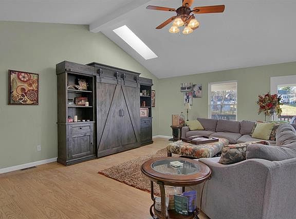 Bring your fishing pole! Very seldom does a home come available on the lake in Bridgewater Estates especially one that offers a flat yard and driveway! This open floorplan concept ranch home offers 4 bedrooms, 3 bathrooms, and an over-sized 2-car garege. Upon entering you'll be greeted by the entry foyer, vaulted living room with skylights, breakfast room and over-sized kitchen. The kitchen offers recently painted cabinets, newer counter tops, tile backsplash, pantry, and newer stainless appliances! The master suite offers tray ceiling, walk-in closet, and a recently updated master bathroom which offers double vanity, and a custom tile shower with dual shower heads! The views from the covered deck off the living room will leave you speechless! Head downstairs and check out the recently finished off walk-out lower level that offers family room, full bathroom, and a custom bar/kitchen that will blow your socks off! Lower level walks right out to large patio and level backyard/lake!