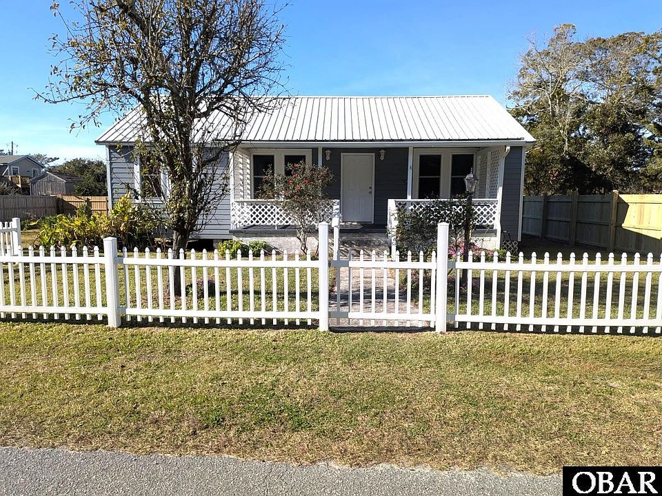 A 3 bedroom, 1 bath traditional island home built in 1956; classic and strong like the Outer Banks cottages of yesteryear! The home sits on 2 fenced lots, an animal lovers dream! Centrally located on a quiet dead end road with a good mix of year round and vacation rental homes. Lots of natural light! Renovated in 2020; new windows, doors, luxury plank vinyl throughout, mini split system for heating and cooling, walls, insulation, ceiling fans, metal roof, painting (interior and exterior) and Hardi-plank lap siding exterior. Eat-in kitchen with stainless steel cook stove and refrigerator, double kitchen sink and nice cabinetry. Spacious living room, gracious bedrooms (one with a cozy sitting area), stackable washer/dryer and covered front porch. Currently being used as a second home but could easily transition to a primary home or vacation rental.
