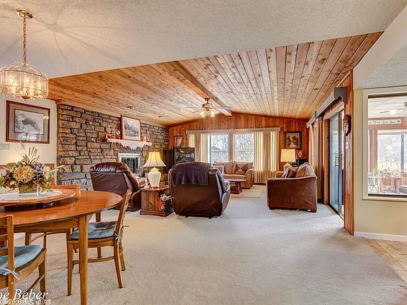 LOTS OF DETAILS in This Special Lake Home With Covered Boatslip - Priced Just Right! Breathtaking Pine V-Groove Vaulted Wood Ceiling and Handsome Stone Gas Fireplace & Hearth. Open Spacious Living Includes Sunroom and Kitchen with View of the Lake. Three Bedroom, Two Bath, Master has Spa-Tub and Separate Shower & Walk-in Closets. SPECIAL BONUS: THREE CAR GARAGE! Inviting Lake Home with Decking for Outdoor Living on Three Sides. Irrigation System & Storage Shed. Call for Your Personal Tour Today!