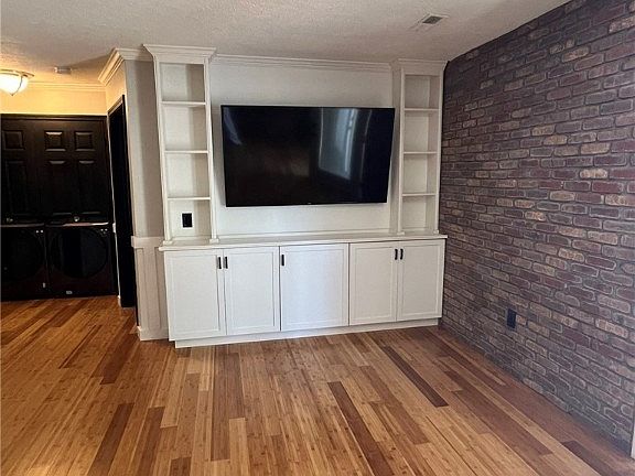 Solid brick accent wallsModern fixturesTile finishesGranite countertopsCrown moldingRenovated kitchenNew refrigerator