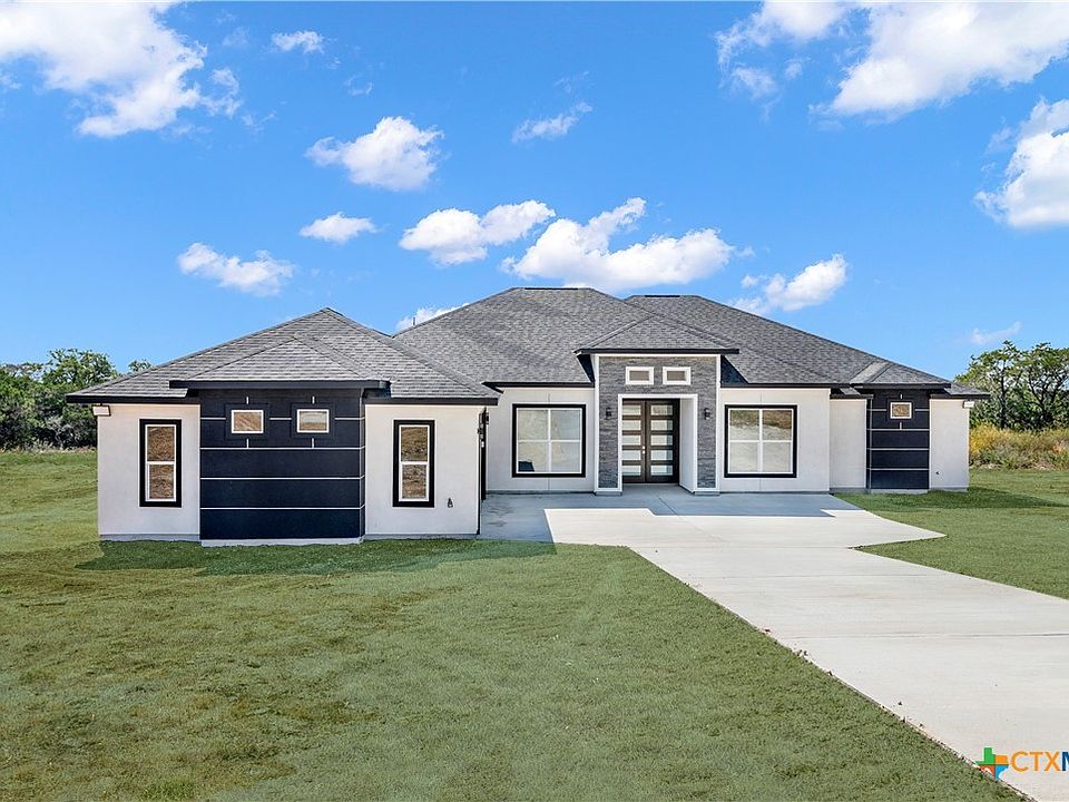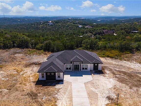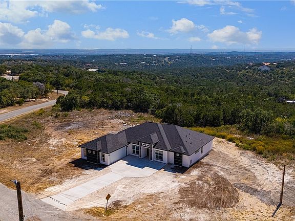Experience tranquility and stunning panoramic Hill Country views while still being just minutes from everything! This brand-new custom-built single-story home sits on 2 beautiful acres and offers 2,610 sq ft of contemporary elegance. Featuring a sleek stucco exterior, 3 spacious bedrooms, 3.5 luxurious baths, and a dedicated study/office, this home is designed for both comfort and style. Enjoy the open-concept floor plan with soaring ceilings, a bright and airy living space with an in-wall fireplace, and expansive windows that capture the views. The gourmet kitchen includes a large breakfast island, farmhouse sink, custom cabinetry, stainless steel appliances, and electric cooking. The dining area is perfect for gatherings and entertaining. The primary suite is a true retreat with a spa-inspired bath, walk-in shower, and generous closet space. Step outside to a large covered patio where you can unwind and take in the breathtaking scenery. An oversized two-car garage adds convenience and storage. Come see this incredible property today - where luxury living meets peaceful Hill Country charm!