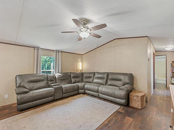 Cute Single wide 3 bedroom 2 bath home on a little over an acre Enter the home with an open family room to the Kitchen and dining area. Dedicated Mudroom near the back door. Utility room in the home. Spacious primary bedroom easily fits a king size bedroom set. En Suite bathroom with soaking tub. This home features a split floor plan keeping privacy for the parents with the secondary rooms on the other side of the home. Recently had a new composite roof and HVAC System is less than a year old. Pull through your gated driveway to a Metal covered carport. This home is move in ready. Yard Maintenance is NOT included and the responsibility of the tenant. This will be a condition in the lease.