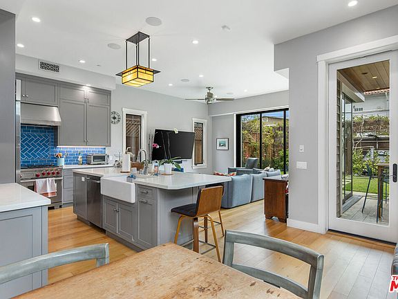 Start and end your days on the stunning rooftop deck of 106 Dudley, your front-row seat to sweeping ocean views, golden sunsets, and laid-back coastal living just one block from the beach. Built in 2018 and set on one of Venice's coveted walk streets, this contemporary Craftsman home is thoughtfully designed for the ultimate indoor/outdoor lifestyle. From the rooftop down to the private backyard, every space has been custom crafted with luxury finishes and effortless functionality. On the main level, the heart of the home is a gourmet chef's kitchen outfitted with high-end appliances, custom cabinetry, a walk-in pantry, and an expansive island perfect for hosting or daily life. The kitchen flows into the great room, which opens to the backyard through floor-to-ceiling doors that blur the line between inside and out. A dedicated dining area and a cozy den with stone fireplace add warmth and versatility. A smartly designed guest suite with a Murphy bed ideal as a home office completes the first floor. Upstairs, the spacious primary suite offers a serene retreat with a walk-in closet and spa-style bath featuring a deep soaking tub, walk-in shower, and dual vanities. Two additional bedroom search with walk-in closets share a beautifully appointed bathroom with double sinks. A central landing space makes the perfect home office, media lounge, or play area. The upstairs laundry room adds convenience right where you need it. However, it is the rooftop that truly sets this home apart