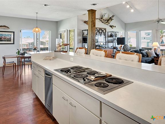Welcome to your Port O’Connor getaway! This spacious home offers the perfect blend of comfort, functionality, and coastal charm — just steps from beautiful Kingfisher Beach. Upstairs, you’ll find 3 bedrooms and 2 baths with an inviting open-concept layout. The kitchen is designed for entertaining, featuring a large eating bar, double ovens, and a bright dining area. The living room showcases picture windows overlooking the water, a cozy wood-burning fireplace, and a convenient wet bar — ideal for relaxing after a day on the coast. Step outside to enjoy both covered and uncovered decks, perfect for taking in the breeze and sunset views. Downstairs features an additional living area, 2 bedrooms, and 1 bath — great for guests or extended family. There’s also a dedicated tackle room for your fishing gear. Enjoy covered parking under the home and a 2-car garage spacious enough for your boat, plus an electric lift for added convenience. Whether you’re looking for a full-time residence or a weekend retreat, this property has everything you need for laid-back coastal living in Port O’Connor.