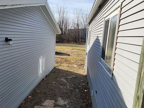 This is a manufactured home with three bedrooms. It does have a nice ramp and covered porch attached to the home. Two car detached garage with new garage door and opener. This does come with large lot. Plenty of room to have a large back yard or garden. Many new features have been added to this home included new flooring, and updated bath in 2025. Home has an updated kitchen. Metal roof on both the home and the garage.