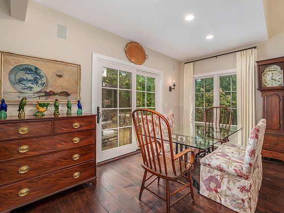 This luxury property is unsurpassed for those seeking a relaxed lifestyle surrounded by natural beauty. The two, possibly three bedroom, three-bathroom Spanish Revival home, originally built by Frederick Bartlett, was entirely reconstructed in 2016 with an architect's skill, an interior designer's impeccable eye and no expense spared. Set on a dune surrounded by lush landscaping, the home's charming stucco exterior, red clay tile roof and delightful entry welcome you. Inside, spacious, sunny rooms flow easily and the floor plan seamlessly integrates the indoors with the outdoors making this an exceptional home for comfortable living and entertaining. A dramatic two-story fireplace anchors the living and dining areas and the well-appointed kitchen with custom cabinetry, induction oven and suede finished marble countertops opens to the most enchanting brick garden patio for quiet retreat, al fresco dining and gatherings under the stars. The primary suite is thoughtfully separated on the main level for privacy and features a spa-like bathroom, a professionally organized walk-in closet and an office. A cozy den with a wood burning fireplace leads to a screen porch surrounded by trees where you can unwind listening to the tranquil sounds of nature. Upstairs there is a generous size room overlooking the courtyard that offers flexibility for guests, a 2nd bedroom and a full bathroom. Exquisite finishes that lend to the home's warmth and historical past include high ceilings, recessed lighting, tall windows, wide plank, hand scraped hickory wood floors, arched molding, a wrought iron stairway and exposed ceiling beams. This is your opportunity to own one of Beverly Shores' finest homes. 106 East Idler is as versatile as it is magical -a private sanctuary for retreat and connection.
