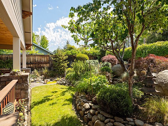 This unique home features 3 bedrooms, 2 full baths, and a bonus room. Granite countertops, stainless steel appliances and farmhouse sink grace the kitchen. The living room and kitchen have high ceilings opening to dining area and deck. The owner's suite opens up to the back deck and a delightful, terraced garden. The bath offers a jetted tub and shower with granite walls. The guest bathroom boasts marble walls and floors, with an inviting steam and shower room. Quality top-down bottom-up window shades throughout most of home. Outside, enjoy the custom landscaped yard, waterfall feature, and covered porch with a wood-clad soffit. Relax on the upper-level deck with mountain views, fire pit table, custom lighting and a redwood storage unit with rustic barn doors. There's a Humboldt County Redwood built 2 car carport, 2 car garage, and extra parking spot. Wrought iron exterior art by artist Rod Rosebrook including an artistic gated entry. Enjoy access to the community pool and park!