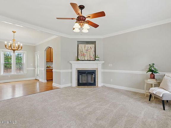 Exterior highlights include BRICK FRONT GABLES for added CURB APPEAL. Relax outdoors on the COVERED ROCKING CHAIR FRONT PORCH or the LARGE COVERED DECK overlooking a PICTURESQUE SETTING just minutes from DOWNTOWN PRINCETON with EASY COMMUTES to GOLDSBORO, RALEIGH, and SJAFB. PLUS ATTACHED 1-CAR GARAGE