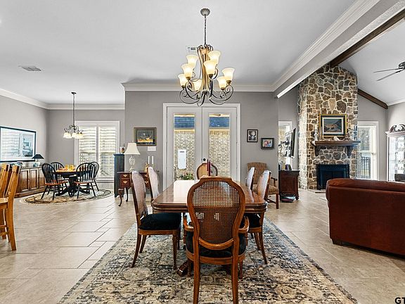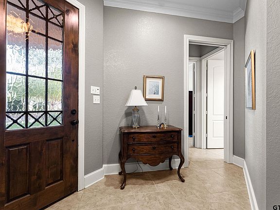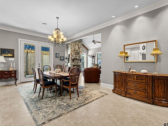 Charming 3 bedroom 2 bath home nestled in the serene, gated, golf community of Eagles Bluff. This beautifully, maintained home offers the perfect blend of comfort and luxury with an an open-concept layout, and abundant natural light, which perfect for entertaining or relaxing after a day on the course. Retreat to the generous primary suite featuring an en-suite bath with dual vanities, separate stand alone tub, walk in shower and a walk-in closet. Two additional bedrooms provide flexibility for guests or a home office. There is a bonus built-in-office space between the kitchen and garage. The landscaped yard offers a peaceful escape to, surrounded by the beauty of the community. Enjoy access to exceptional amenities, including Lake Palestine, club house, fitness center, pool, tennis courts and, of course, the stunning golf course just steps from your door. Schedule your showing today and make this low maintenance home yours!