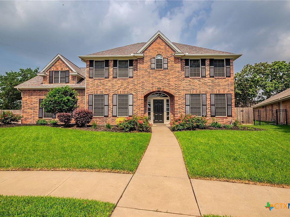 This gorgeous 2-story Colonial Style 4BR/2.5BA home with a Pool on +/- 0.67 Acres is in a Cul-De-Sac in the desirable Colony Creek Subdivision! Beautiful curb appeal welcomes you inside a spacious entryway with pretty wood floors, columns, and a fabulous stairway. The formal living room with crown molding, decorative wainscoting, and columns opens to a bright and cozy family room with elaborate built-ins around a fireplace and an amazing view of the backyard oasis. Just off this room is the perfect bay window and breakfast area, a great little office nook, and a huge walk-in pantry. The modern kitchen with nice black cabinets, a gas grill, double ovens, and a center island offers plenty of storage and counter space. This leads to the beautiful formal dining room. Up the gorgeous stairway is an amazing primary bedroom with pretty angled ceilings (and a little bonus room/could be an extra closet) and a bright luxurious bathroom with double vanities, a large sleek glass shower, a jacuzzi tub, tons of storage, and his/hers closets. The other 3 bedrooms upstairs are each unique, one with an adorable window bench, another with dual windows, and the other is larger and includes a small bonus room with a closet! There are many possibilities with all this added space (media room, workout gym, office, playroom). Enjoy time with family and friends in the backyard pool, relax in the hot tub, dine under the patio, and make memories. There is plenty of room for a shop, your pets, a garden, and plants too! Schedule your showing today! Try our 3D tour and walk through this home today using your device.