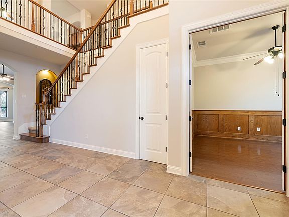 - Breakfast Bar, Crown Molding, Entrance Foyer, Exhaust Fan, French Doors, Granite Counters, High Ceilings, Interior Steps, Multiple Dining Areas, Multiple Living Areas, Primary Bedroom on Main, Recessed Lighting, Walk-In Closet(s)