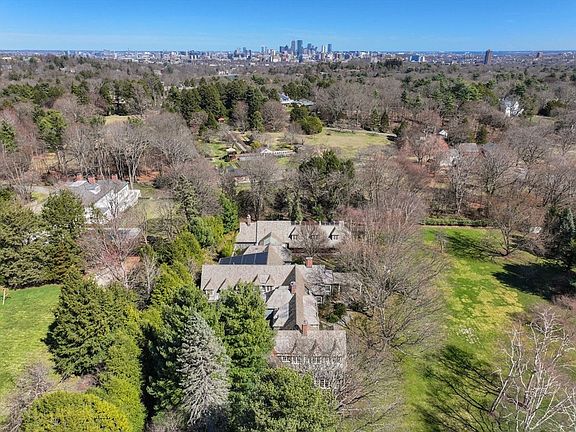 This grand estate is sited on 4.28+ acres in the heart of The Country Club neighborhood of Chestnut Hill, Brookline’s most idyllic setting. Few parcels of this size remain, and this sought-after-end of the-road location affords a level of privacy rarely found so close to the city. The property was purchased privately in 2002, and the house was renovated under the direction of Dell Mitchell Architects and built by the Ralph S. Osmond Company. Designed thoughtfully and built with the finest materials, the style is timeless. Embracing the beauty of the site, the house is centered on a gracious entry opening to elevated views of the expansive grounds. The amenities are remarkable: an indoor pool pavilion, meditation room with Japanese garden, home office, exercise room, salon and 1-bed staff apartment. The grounds are exceptional with a gated entry, graceful approach, park-like setting of sweeping lawns, specimen trees and flowering gardens. The property also offers 3-bedroom guest house.