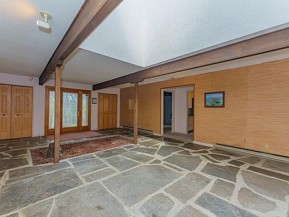 *Buyers financing fell through, their loss is your gain!*Elevate your vision of country living with this mid-1980s ranch, on 5 acres of sprawling countryside. While this 3-bedroom, 2-bath haven exudes timeless charm, it awaits your personal touch to fulfill its true potential. Originally designed with passive solar, it has been upgraded to feature active solar technology, with the added security of a whole house generator. Indulge in moments of relaxation in the jacuzzi sunroom, take a refreshing dip in the inviting heated inground pool, or explore your own private 1/3 mile jogging trail. Additionally, the two-car garage provides ample space for your vehicles, with the convenience of an adjacent office, perfect for remote work or creative pursuits.