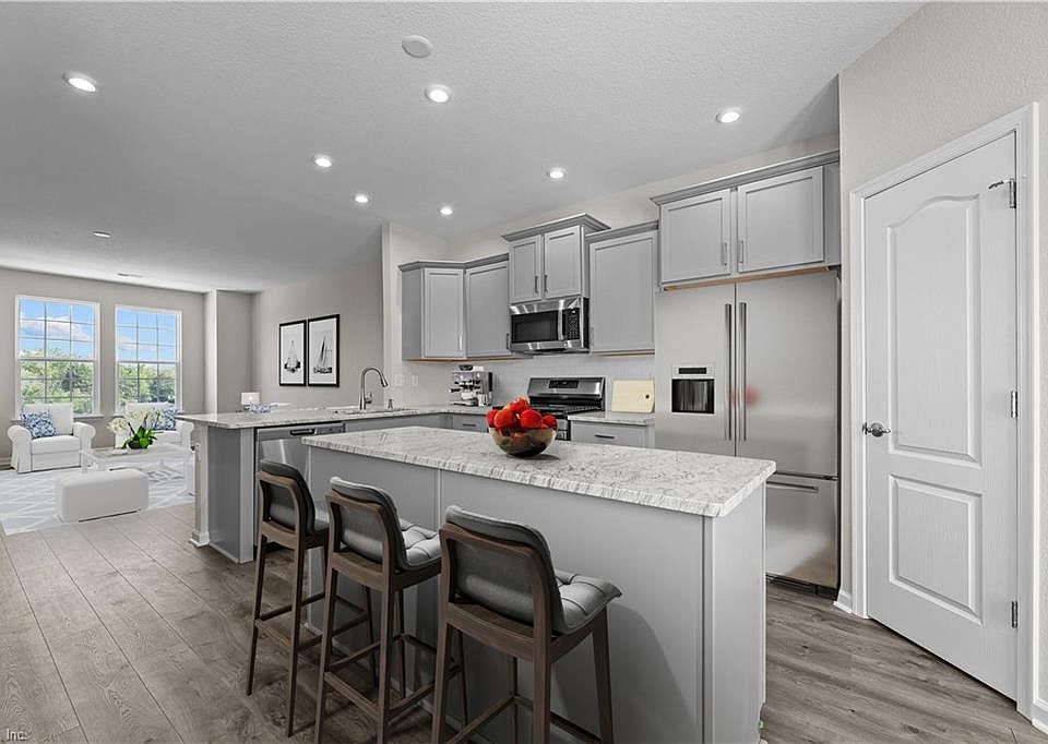 The Braeburn - offers three levels of luxury townhome living. Enter on the first level into a spacious foyer, where you'll find a bedroom and full bath. The second level features a bright family room, a large kitchen w/a center island and a separate dining area. The kitchen is beautifully appointed w/granite countertops & cabinetry that includes soft-close doors & drawers. The third level is dedicated to rest & relaxation. It offers a spacious primary bedroom w/an ensuite bathroom, two additional bedrooms, a shared full bath and a conveniently located laundry room.