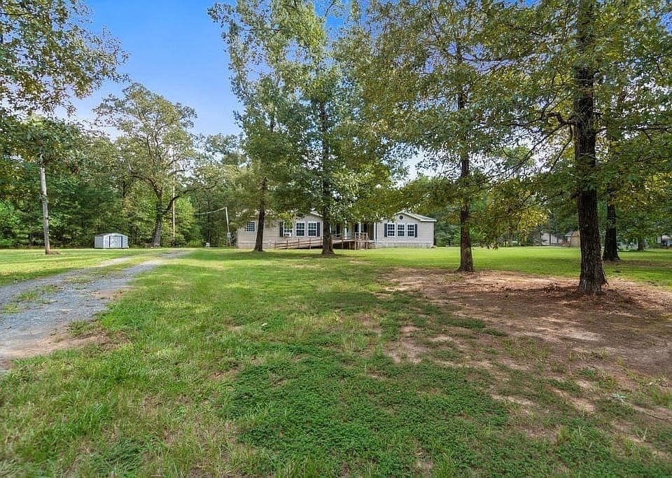 This HUGE 4 bedroom, 2 bath triple wide sits on nearly 3 acres of land that overlooks a beautiful stocked pond. This home is very spacious and has an open floor plan. The primary bedroom boasts a large spa-like bathroom with a garden tub, stand alone shower and dual sinks with a huge walk-in closet. The walls and ceilings are sheetrock and the windows are insulated. The kitchen is very spacious with a large center island and lots of cabinet and drawer space. Large mudroom with laundry and utility area. The sliding glass door leads from the dining area to the back porch where you can sit and enjoy a beautiful sunrise. Outside there are raised planters for a garden or herbs and the storage building will remain with the property. New Owner will have a BRAND NEW ROOF and AC. Near Lake Bistineau, convenient to South Bossier, Haughton and Doyline. Come make this tranquil paradise your new home. AGENTS: PLEASE READ THE PRIVATE REMARKS.