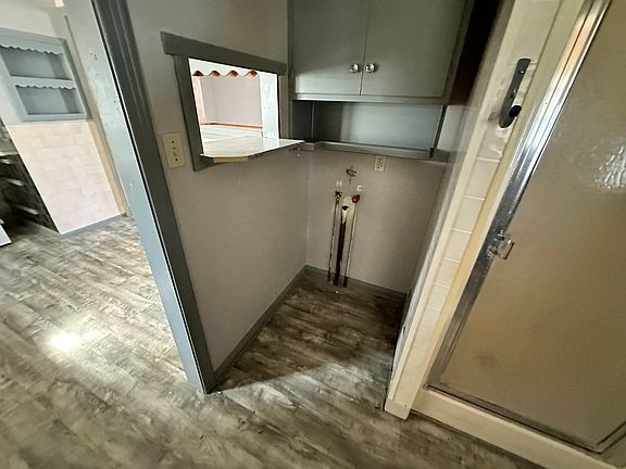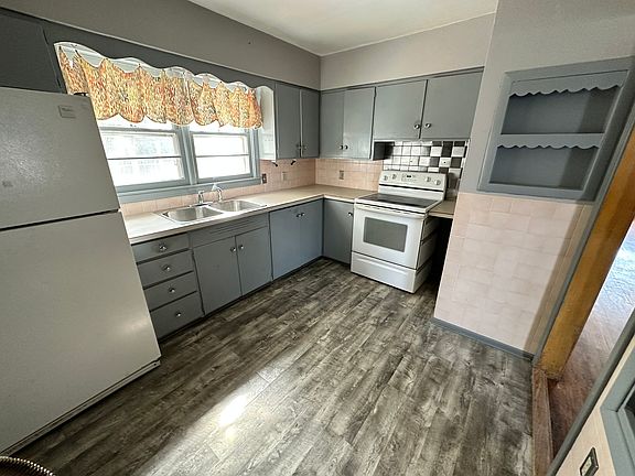 2-bedroom, 1-bath house. The stove and fridge are included, along with central air and central heat. The house has an extra shower, a dishwasher, washer-dryer hookups, an attached garage, and a fenced-in yard with a shed. Quiet street