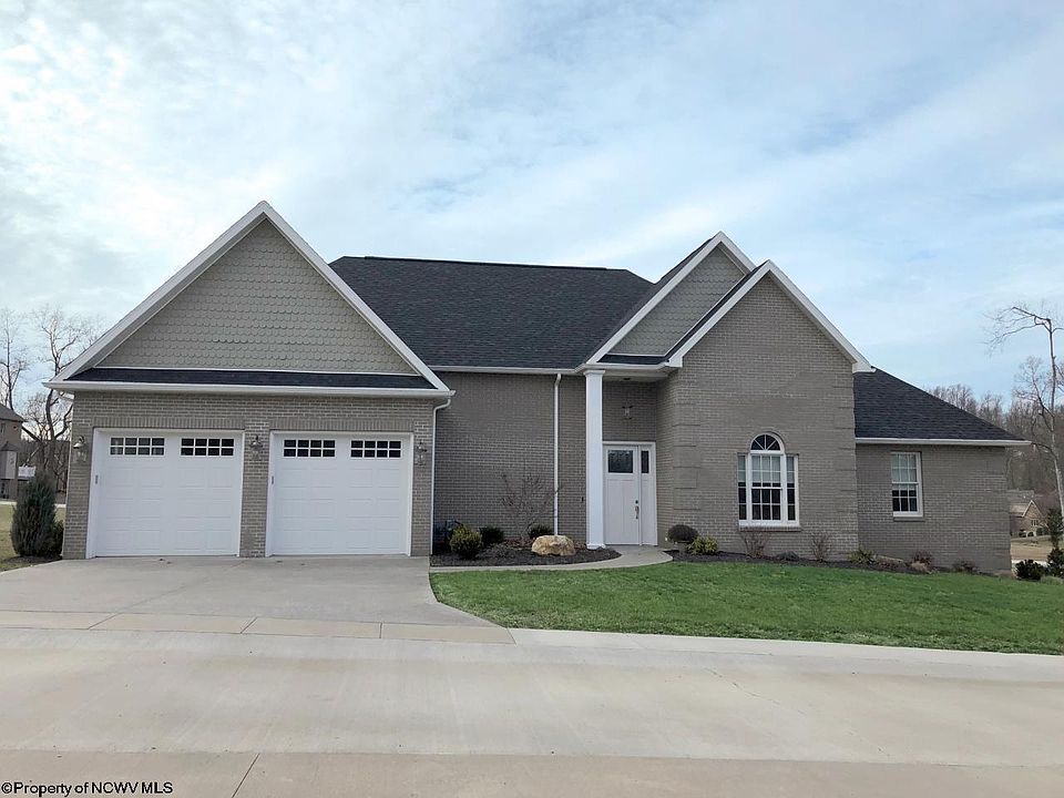 Spacious open floor plan w/14' coffered ceiling in great room w/6' fireplace. Upscale kitchen features 2 islands, SS appliances, quartz counters & opens into formal dining. Lovely primary suite w/extensive shelving in 20' primary closet. Primary bath features beautiful walk-in shower plus round tub. Low maintenance brick ranch w/radiant floor heat plus 2 HVAC systems. Covered back porch, great for entertaining. All situated on landscaped level lot w/concrete sidewalks & streets.