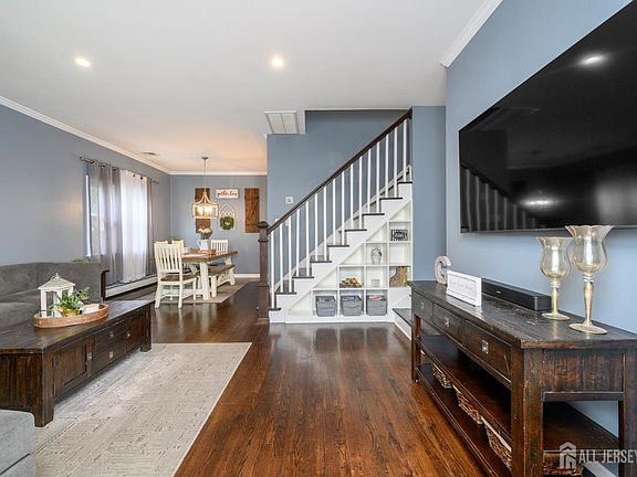 Home Sweet Home! Beautiful 3 Bed 2.5 Bath Split with Master Suite, Finished Basement, and 1 Car Garage in highly desirable Fords is sure to impress! Meticulously maintained inside and out with curb appeal and plenty of modern upgrades all through, move-in-ready and waiting for you! Covered front porch gives way to a spacious and sophisticated interior with generous room sizes, hardwood floors that shine, recessed lighting, crown moldings, and a cooling modern palette that is easy to customize. Lovely living room flows right into the sun soaked dining room for seamless living and entertaining. Upgraded Eat-in-Kitchen offers sleek SS appliances, gorgeous quartz counters with subway tiled backsplash, ample cabinet storage, and delightful breakfast bar. Down the hall, find the main full bath along with 3 generous and bright bedrooms, inc the Master Suite. MBR boasts its own private ensuite 1/2 bath. Upstairs, find a versatile Bonus Rm, along with access to the unfinished attic. Finished basement boasts a large Rec Rm, 2nd full bath, laundry and storage space. Plush, park-like backyard holds a patio and fire pit area, and is fenced-in for your privacy and comfort. 1 car garage with oversized driveway offers plenty of guest parking. All of this & more in a prime location, just steps to the Highland Grove Pool, playground, shopping, dining, public transit, and easy access to major roads for an easy commute. Don't miss out! Truly, a Move-in-Ready MUST SEE!