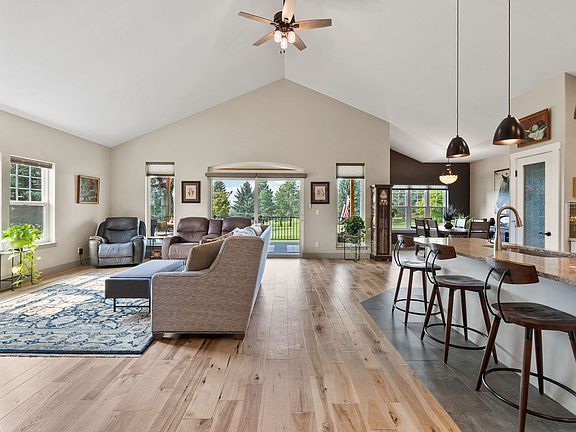 PRICED BELOW RECENT APPRAISAL! This Eagle Bend gem offers a rare opportunity to experience modern living in a location where golf course views, small-town charm, and Montana adventure all come together. Set along the fairways of Eagle Bend Golf Course, this beautifully designed single-level home (built in 2021) blends modern comfort with timeless Montana style. From peaceful mornings on the expansive covered deck to evenings gathered around the flagstone firepit, this is a home made for enjoying every season. Inside, sunlight pours through large windows, highlighting the vaulted ceilings, warm hickory wood floors, and a welcoming gas fireplace in the great room. Custom top-down/bottom-up shades add both privacy and style throughout. The chef’s kitchen is thoughtfully appointed with heated floors, granite counters, and sleek stainless-steel appliances—perfect for both everyday living and entertaining. The spacious 12x16 primary suite offers a true retreat with a walk-in closet, dual sinks, and a stylish tile shower. Bathrooms throughout the home feature elegant granite and tile finishes. Practical comforts such as a whole-house generator, high-efficiency furnace, and air conditioning, ensure ease of living year-round. New flooring, Bosch appliances, and paint in 2025. Beyond the property, the lifestyle here is unmatched. The charming village of Bigfork—with its world-class galleries, fine dining, shops, and the beloved Bigfork Summer Playhouse—is just minutes away. Outdoor recreation surrounds you: Flathead Lake, Flathead River, Swan River, Blacktail Mountain Ski Resort, and Whitefish Mountain Resort within an hour’s drive, not to mention Glacier National Park—the “Crown of the Continent.” All of this with the bonus of Bigfork’s “banana belt” reputation for milder winters. . Kalispell, Lakeside, Whitefish, and Columbia Falls are within a short drive. Glacier Park International Airport awaits your extended travel plans.