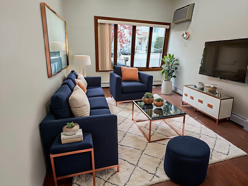 This bright and comfortable 1-bedroom duplex includes a large private driveway and WiFi in the rent. The home features tall ceilings and a large open living room. The kitchen offers stainless-steel appliances with plenty of cabinet and counter space. The bedroom is located behind the kitchen on the lower level, providing excellent separation and privacy from the main living area.