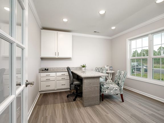 The one story Chatham is brand new to JC Jackson's Carolina Series. With three bedrooms and two bathrooms this split bedroom home features an impressive entry that showcases your dining room and study just inside the front door, then leads you to the expansive great room open to the breakfast area, and kitchen with center eat at island. With tall cathedral ceilings and windows across the back of the home that provide views of the backyard, this home was built for entertaining! The owner's bedroom is separate from the secondary bedrooms with easy access to the garage through the conveniently located laundry room. The unique layout of this floor plan allows for a partially covered porch to come included in the base model! The Mill community features for this plan include a propane gas fireplace, dual vanities in owner's bath, a drop zone in the laundry room, garage service door, cathedral ceiling in owner's suite, and additional windows through out the home to provide more natural light. Additional luxury choices include a powder room or even a fourth bedroom with third full guest bathroom, extended rear covered or screened porch, a Carolina room, laundry cabinets and more! Amenities: Cathedral Ceiling in Owner's Suite, Dual Vanity in Owner's Bath, Garage Service Door, Rear Covered Porch, Windows in Bedroom 2, Windows in Bedroom 3, Windows in Owner's Suite
