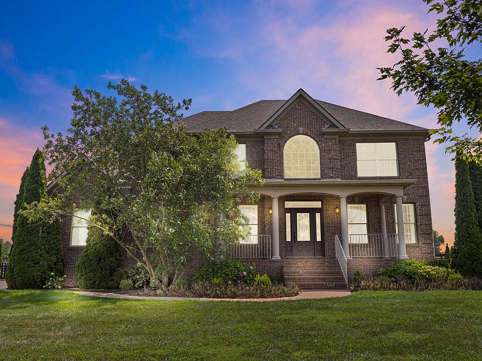 Nestled on a 1-acre lot backing to protected farmland, this 4-bedroom, 3 full + 2 half bath all-brick home offers the blend of elegance and privacy in an area where homes rarely come to market. Enter a grand 2-story foyer with an open staircase by a formal dining room, and a private office with French Doors. The soaring, light-filled great room offers windows to the ceiling, custom built-ins, and a gas-log fireplace. It flows into the gourmet kitchen, with a large center island, custom cabinetry, granite, a walk-in pantry, a breakfast area wrapped in natural light, and a second staircase with added convenience. Upstairs, the vaulted primary suite features hardwood floors, a spa-like bath with whirlpool tub, tiled shower, double vanities, and a custom walk-in closet. Custom closets in all three additional bedrooms as well. The layout includes a Jack-and-Jill bath and a private en-suite, as well as an upstairs tiled laundry room. The walk-out basement features a theater room, bar, and home gym. Outdoor living shines with a large deck, seeing peaceful meadows, and a built-in gourmet gas grill. Additional features, geothermal HVAC, central vacuum, multi-zone audio, and a 3-car garage.