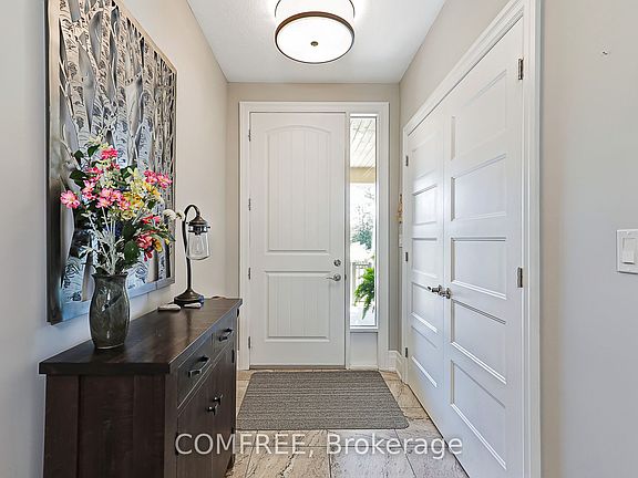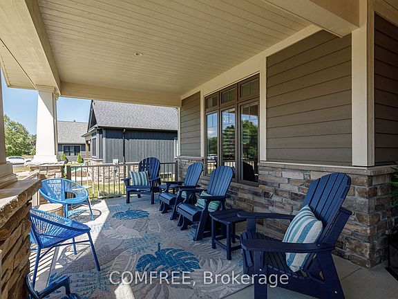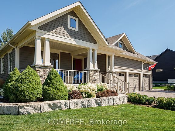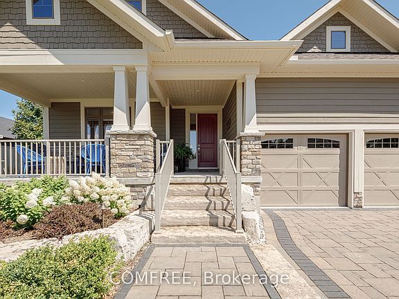 106 High Bluff Lane is located on one of the most sought after streets in Thornbury. This 2+2 Bedroom Bungalow with a 3-Car Garage, and over 3600sqft of living space, is on a private, fully fenced, park-like, 1/4 acre lot backing onto greenspace and a ravine. It is a beautifully landscaped property with close to $200K spent on perennial gardens, mature trees, inground sprinkler system, low voltage landscape lighting, interlock driveway that can easily accommodate 5 cars, interlock patios, and a 12' x 14' pavilion. There is also a garden shed with separate electrical panel. The large front porch is a great place to sit and relax. The main floor consists of Engineered hardwood floors and has a large open plan chef's dream kitchen with Bosch Appliances - 5 Burner Gas Cooktop, Built-in Range &Microwave/Convection oven, French 3-door Fridge, Dishwasher and a Marvel Beverage fridge. There is a Cathedral ceiling in the dining room and great room with floor to ceiling stone gas fireplace and huge windows & sliding door looking out to the backyard. A large primary bedroom has an ensuite with heated floors and walk in closet. A front bedroom/office completes the main floor. The basement boasts 8.5' ceilings with large, upgraded windows and the ultimate man cave with custom bar and a gas wood stove that keeps the basement comfortable all year long. There is also huge craft studio that could easily become a games room or gym space. 2 more nice sized bedrooms and a bathroom with heated floor complete the basement area. All the closets have been custom designed for the ultimate in storage solutions. Custom built-ins in the garage and a Generac generator are just some of the extra features of this property. You will have a 2-minute walk to access the Georgian Trail, a 5-minute walk to Goldsmith's Farm Market, a 20-minute walk to Foodland & LCBO and a 30-minute walk to town to enjoy any of the many coffee shops and restaurants
