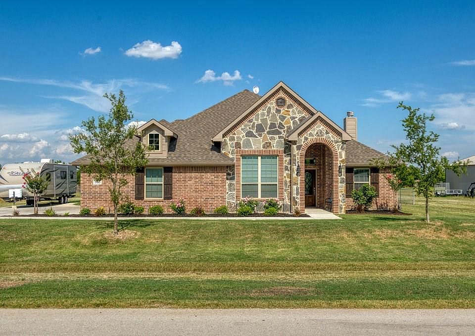 Your country getaway not far from city conveniences! Perfect curb appeal with tasteful landscaping, RV parking and covered front porch. As you enter, notice how this open concept home allows for great entertaining. Soaring ceilings abound in the main living areas with kitchen opening up to den. Gorgeous island with granite counters, coffee bar and stainless steel appliances enhance kitchen. Nearby, small mud room helps keep everything tidy. 4th bedroom is separated from the rest of the bedrooms - a perfect spot for guests! Study with lovely french doors makes working from home a breeze. Pre-wired for surround sound in living room, patio and master bath. Home backs up to horse farm - Dont miss this one!