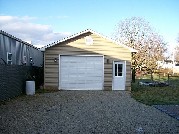 Cute starter home situated on almost a 1/2 acre in town. 2 bedroom with 2 large baths. Home was recently updated with new siding, roof, and detached garage. Lower level is partially finished and could be used as a 3rd bedroom. Laundry is in the basement with washer and dryer to remain with the property. Don't let this one slip away. Very cute and move in ready. Set your appointment today. Walking distance to the Greatest Free Show on Earth.
