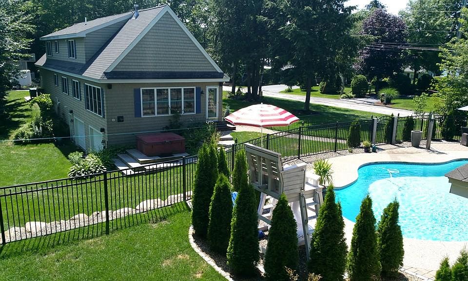 This is the house you've been dreaming of! This custom built 3 Bed, 4.5 Bath, 4 car garage contemporary home left no stone unturned, One of the 24 homes located on Blueberry Island with a breathtaking view of Lake Monomonac from almost every room. A stunning kitchen welcomes you with granite countertops alongside stainless appliances and a large island with central vacuum. Opens up to a separate eating area and dining room with double fireplace that is linked with the sunroom. The sunroom features a pellet stove, surround sound, skylights, and a coffee station. the sunroom leads to the fenced in 40' Gunite pool accompanied by a 22x36' enclosed pool house with 3/4 bath, washer dryer hookup, kitchen,and unfinished space above. Back inside the home you have a massive master bedroom with ample closet space and direct access to your masterbath or to your loft overlooking your kitchen and dining room. Within the basement you will find a tanning room, full bath, and access to a heated garagE
