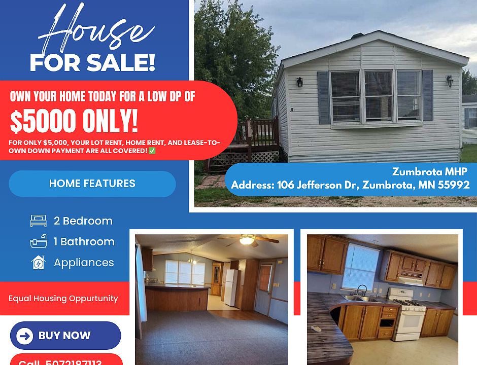 For Sale: Manufactured Home 2 Bed, 1 Bath in Zumbrota, MN!