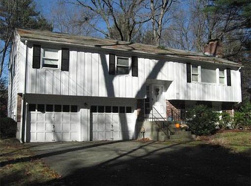 Nice size Split Entry home (48 ft) located on the end of a quiet side street. Fireplace in both living room and family room. Built in bookcases in living room on either side of big picture window. 2.5 baths (1/2 of master bedrm). Updated bright white kitchen with Corian counters. Hardwood floors on main living level (partially under wall-wall). Central A/C, walk-in cedar closet, 2 car garage, gas heat, porch, wooded yard, and close to shopping.