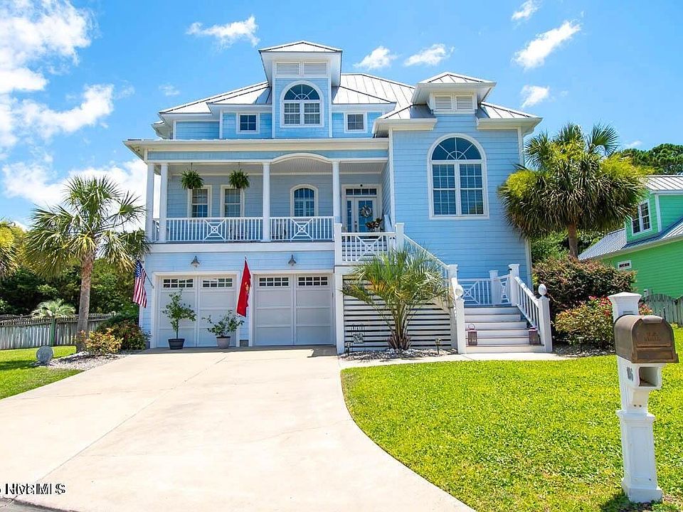Experience refined coastal living in a location that strikes the perfect balance between convenience and tranquility. Ideally situated near top-rated schools, boutique shopping, and just minutes from the Emerald Isle bridge, this residence offers the best of Crystal Coast life. Designed for comfort and effortless living, the home has been beautifully refreshed inside and out; flooring, paint, an elevator, and a tankless hot water system to bring both ease and elegance. The whole-home speaker system sets the mood throughout, while a central vacuum simplifies upkeep. Step outside and your private retreat awaits. A saltwater pool glimmers in the sun, paired with a 6 person Bluetooth-enabled hot tub for evening relaxation. Enjoy a fenced backyard, outdoor shower, patio with built-in fire pit, and a powered shed ideal for storage or creative use. It's an oasis made for both quiet mornings and lively gatherings. Inside, you'll find thoughtfully designed spaces that live beautifully. A gourmet kitchen anchors the main level, opening to a dining area with peaceful water views and a screened porch perfect for lingering sunsets. Flexible rooms throughout the home provide options for a home office, fitness studio, media room, or guest accommodations — the layout adapts easily to your lifestyle. The top floor is a sanctuary of its own, where the primary suite offers two walk-in closets, a spa-inspired bath, and private access to an elevated balcony. When the day calls for adventure, stroll to the community dock and take in breathtaking sunsets over Broad Creek. Smaller boats with removable T-tops can travel under the nearby bridge, and for larger vessels, the marina across the street offers an easy annual launch option. Best of all, the property rests outside the flood zone — offering peace of mind along with beauty. This is coastal living with style, ease, and intention. Welcome home!