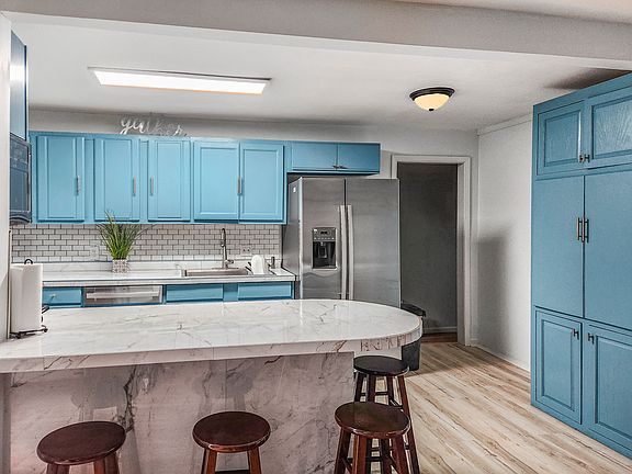 Remodeled kitchenStainless steel appliancesQuartz-tile countertopFresh paint