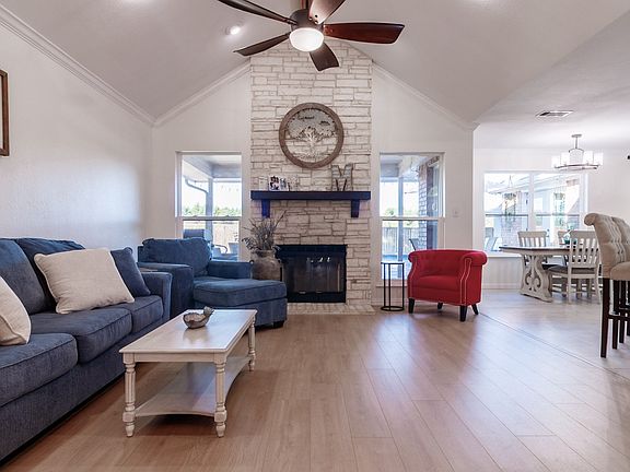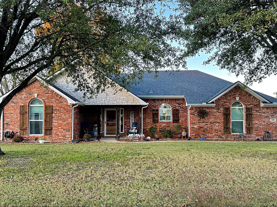 Welcome to 106 Kristy ct in Pottsboro. This beautiful open concept home features luxurious amenities such as a heated pool and large covered back patio with a new outdoor kitchen. Separate she-shed or pool house outside, spacious 2nd fenced-in side yard. Making this space perfect for entertaining while keeping cool in the summer! This home also boasts a large soaking tub in the primary bathroom and a large walk-in shower with a rainfall shower head. On-suite office connected to the primary bedroom and garage, open concept living space with beautiful dining area and plenty of counter space!