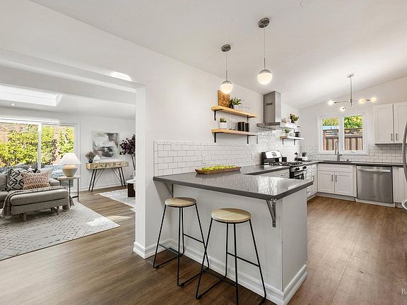Discover and move right in to this turnkey, expanded and stylish single-level home in Santa Venetia. The thoughtfully renovated kitchen features abundant cabinetry, quartz countertops, and stainless steel appliances with a breakfast bar areaperfect for today's modern lifestyle. The home's open and spacious floor plan offers four bedrooms and two full bathrooms, providing more room than is typical for the neighborhood. Enjoy the light-filled living room addition with vaulted ceilings and a large skylight, creating an inviting space for relaxation and entertaining. Additional highlights include dual-pane windows throughout, luxury vinyl flooring, upgraded main and sub electrical panels, and a recently upgraded central furnace and A/C system. The laundry area has been conveniently relocated from the garage for added functionality into the fourth bedroom. Set on a generous lot, the property offers potential for future yard expansion while also featuring a newly hardscaped entertaining and play area with artificial turf for low-maintenance enjoyment. Ideally located next to local favorite Pueblo Park, this home combines comfort, convenience, and quality upgrades in a sought-after San Rafael location.