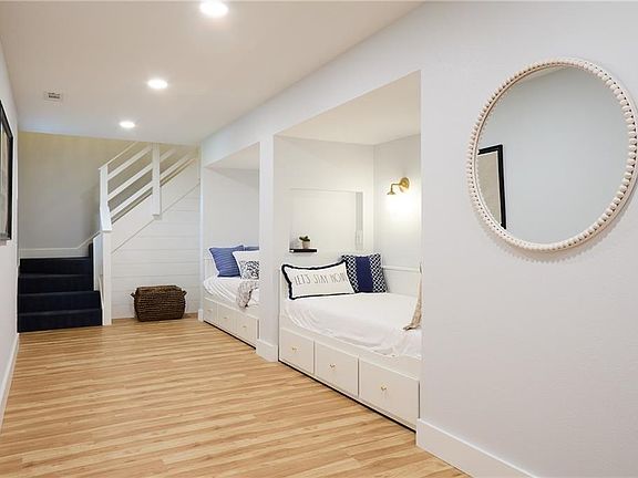 Fully renovated Modern Americana lakefront home at Lake Viking with nearly 3,000 sq. ft., 5 bedrooms, and 4 bathrooms. Offered furnished (excluding seller’s personal items and décor), this turnkey property is ready for year-round living or weekend use. Located on a .491-acre waterfront lot in a cove with open water views. Features include a private 1-stall dock with side mooring and space for an additional stall, a grandfathered covered pavilion at the water’s edge, and an 1,100 sq. ft. two-tier deck with sunset views. A concrete walkway, landscape lighting, fire pit, and established landscaping complete the outdoor setting. The home was fully rebuilt down to the studs with new HVAC, plumbing, electrical, siding, windows, and drywall. The main level offers hardwood floors, quartz kitchen with stainless steel appliances, and custom wet bar. The lower level includes a second living area with kitchenette, quartz counters, refrigerator, dishwasher, and sink. Sleeping capacity up to 20 with 5 bedrooms, a custom bunk room for 8, and two twin-to-king trundle daybeds. Dual laundry rooms, built-in storage cubbies, banquette seating, and tiled bathrooms with glass shower doors throughout. Primary bath includes a curbless shower. Conveniently located near marina, clubhouse, pool, beach, and boat ramp.