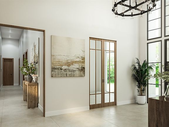 Modern light fixturesBook-matched stone fireplaceOutdoor kitchenSleek aluminum windowsDesigner graniteExpansive walk-in closetPrimary retreat