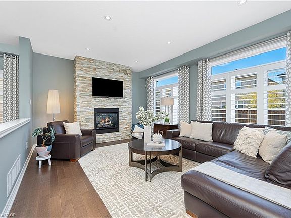 Tucked away on a quiet, low-traffic street, this home and neighbourhood offer the privacy and peaceful living every family hopes for—while being just a stone’s throw from a large park, perfect for outdoor play, dog walks, and weekend activities. From the moment you step inside, the grand two-storey entryway with soaring 18' ceilings makes a lasting impression, setting the tone for the bright and open feel throughout the home. The main floor’s 9 ft ceilings and large windows fill the space with natural light, while the open-concept design makes everyday living and entertaining effortless. The main level offers a spacious and versatile layout featuring a large living room, formal dining room, and a bright dinette that flows seamlessly from the kitchen. The kitchen itself is both elegant and functional, with crown molding and valance on the cabinetry, stone countertops, and a large island with a breakfast bar—perfect for casual meals or catching up over coffee. A convenient guest bathroom on this level adds comfort for both family and visitors. Upstairs, a dedicated laundry room on the bedroom level adds ease and efficiency to busy mornings. All four bedrooms are located on this level, providing privacy and comfort for the whole family. With a total of four bathrooms throughout the home, there’s space and privacy for everyone. The fully finished lower level extends your living space with a full bathroom—including a shower—and a flexible layout ideal for a rec room, home gym, office, or guest suite. Just 3 minutes from the Costco Power Centre and with quick QEW access, this home offers incredible convenience in a family-friendly neighbourhood. Move-in ready and thoughtfully designed—this is the one you’ve been waiting for!