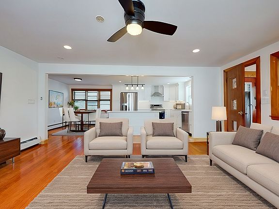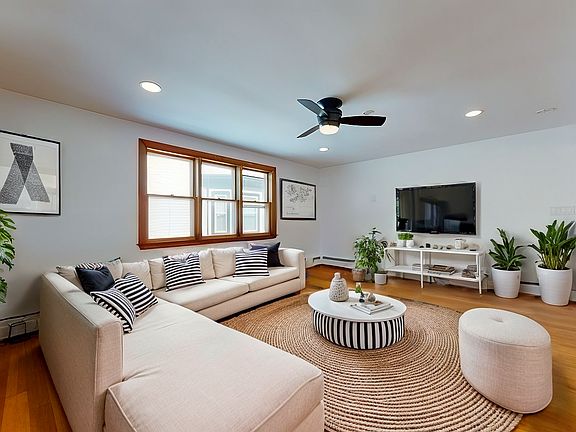 This sunny first floor unit features an open floor plan with a brand new completely renovated kitchen, featuring brand newappliances, quartz countertops, new flooring, soft close drawers, recessed light, ample cabinet space & island for entertaining. The kitchen opens into an add't dining area & large living room perfect for entertaining. A large living roomoffers plenty of room for seating and/or a living room/office combination. Unit shares the back yard, patio and gardenspace. Additional three season porch makes the perfect additional bonus space- perfect for LARGE OFFICE, storage, fitness room, mudroom, etc! Parking available: one garage spot and an additional off street tandem spot for and additional$50/mo. Private storage or work space available in basement. Common Washer/Dryer located in the basement for use. Only 1.5 mi to Malden Center train station, restaurants, breweries and more. this property is a commuter's dream 12 Mo Lease