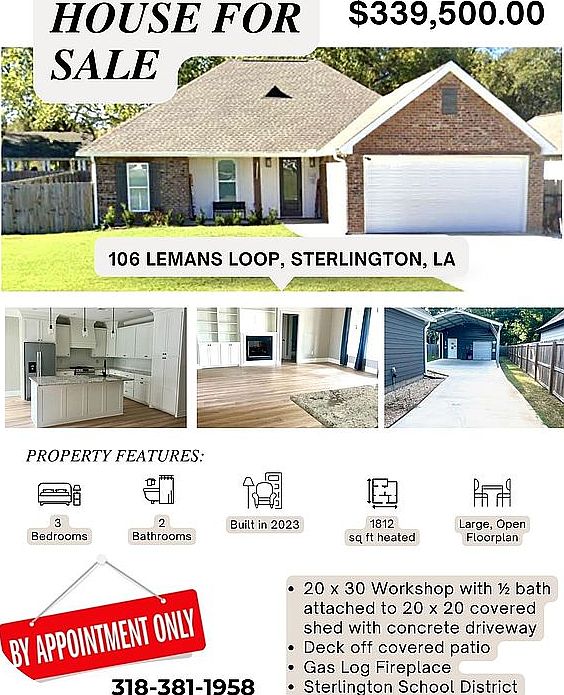 Large open floor plan. Move In Ready. Large shop that is 20 x 30 with 1/2 bath. Large carport 20 x20 attached to shop with concrete driveway from
