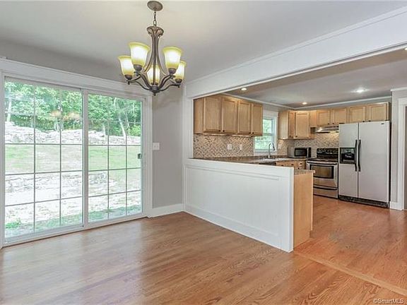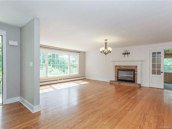 High on a hilltop sits this private renovated country home. This lovely home boasts 4 bedrooms and 3 full baths.2 fireplaces and hardwood floors thru out. The main level has a kitchen that opens up to the dining room, with sliders to the outdoor patio.There is also a sunroom with a brick fireplace and a stone floor. The upper level has the Master bedroom with a walk in closet and a newly renovated Bathroom.The third bedroom is up here also. The lower level has The fourth bedroom and another full bath.The basement level has a fireplace, and is partially finished for a great playroom. Move in before September to have children enjoy Weston's award winning schools!