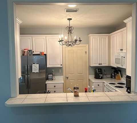 Inside, you'll find central cooling, ample natural light, and a bright, open living area. The kitchen offers plenty of storage and flows easily into the main living spaces, making it great for both relaxing and entertaining.