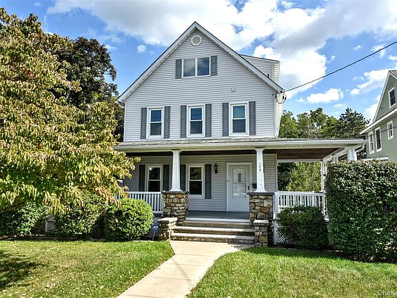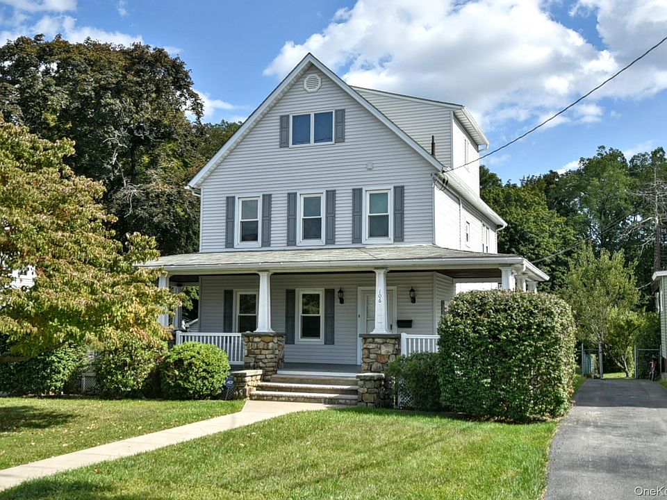 WELCOME TO 106 MAPLE AVE AND LOOK NO FURTHER! Finally, your forever home! This very spacious (circa 1900) colonial served as home to a lovely family for over 45 years where their pride in ownership is evident to this day. The well-manicured property and charming wrap-around porch with field stone pillars lend to this home’s incredible curb appeal. Wrap-around porches are highly desirable and offer expanded outdoor living space and shelter from the elements for year-round enjoyment. The house is situated on a 0.28-acre level lot featuring a rear deck, a detached two-car garage and two additional storage sheds with electricity. The fenced-in backyard is not only kid & pet-friendly but is also the perfect outdoor space for a large garden, patio, fire pit lounge area or swimming pool. The interior of the home offers large living spaces across 3 levels plus an unfinished basement. Adjacent to the entry foyer is a cedar-lined coat closet and an expansive living room that flows into an updated eat-in-kitchen featuring stainless steel appliances. Enjoy convenient 1st floor laundry just off the kitchen near the (full) guest bathroom. The 3-season enclosed porch is flooded with natural light and is the perfect place for enjoying your morning coffee. Continue to the rear deck for some fresh air and evening star gazing or enjoy an outdoor BBQ with family & friends. Retire the evening to three spacious bedrooms on the 2nd floor, served by another full bathroom. The second staircase leads to a large walk-up attic on the 3rd floor offering tons of storage and the potential for 2 future bedrooms or even a large master suite. This home provides ample space for long-term living & entertaining needs. Let’s not forget the unfinished basement, accessible by stairs off the kitchen or via Bilko doors off the left side of the house. The basement houses the mechanics of the home which have been updated over the years and offers dry storage and a handy heated workshop. This beautiful home is in a prime location within the Village of Monroe on a quiet, dead-end street with very light traffic! Living within the village means you’re conveniently close to everything you need (shops, restaurants, big box stores, schools, parks, doctors, house of worship, Woodbury Commons Premium Outlets, etc.). Convenient access to Heritage Trail. Commuter friendly – just a few miles to NYS thruway exchange and Route 6. Roughly 20 min. to Bear Mountain Bridge and only 1 hour to NYC. Enjoy all municipal services (natural gas, water & sewage), central air, 4-zone hydronic heating and Monroe Woodbury School District. Garbage included with taxes. What more can you ask for! Be the first after 45 years to unleash this home’s full potential to truly make it your own. Schedule your private tour today.