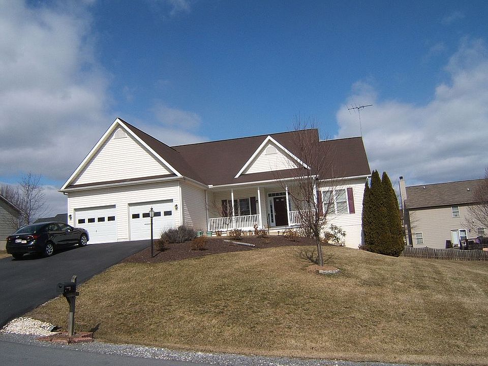 Semi-custom rancher with open floor plan. 3 BR on main level including owner's suite with master bath, 2 BR with shared bathroom. Vaulted 9' ceilings, breakfast nook, laundry room on main floor. Kitchen includes granite countertops, DW, range/oven, microwave, refrigerator, garbage disposal. Finished lower level with rec room, wet bar, office, and guest suite with private bath.